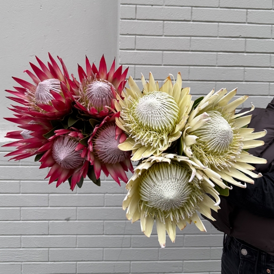 Protea is available all year round, with the peak season from October to March - during this period, the flower has the best shape, color, and longevity.